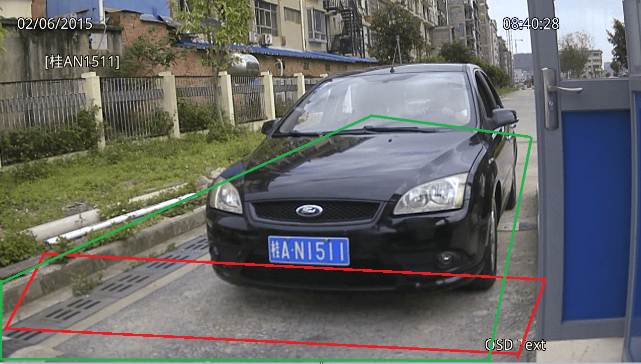 車牌成像的像素值推薦在140~160之間,能夠達到 佳識別率,或者車牌在視頻畫面的寬度占視頻畫面寬度的1/8~1/9 佳, 直觀的調試方式:車牌在虛擬線圈區(qū)域的大小和藍色虛擬車牌尺寸相當. 調試方法: